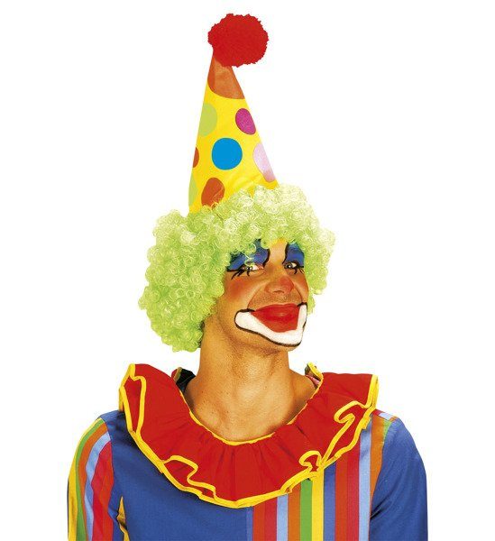 Dookoła czapki przymocowane zielone pukle włosów.