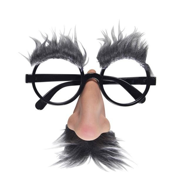 oprawek doczepione są siwe brwi i wąsy oraz duży