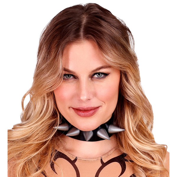 Naszyjnik wykonany z elastycznego tworzywa. Z doczepionymi kolcami. Zapinany na zatrzaski.