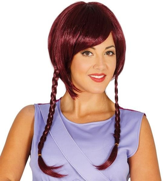 Po bokach doczepione dwa warkocze, całość w kolorze bordowym.