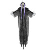 Dekoracja wisząca przedstawiająca wiedźmę. Do głowy doczepiono fioletowe kosmyki włosów. Posiada ręce które można dowolnie wyginać. Szata w kolorze czarnym z białymi pajęczymi sieciami.