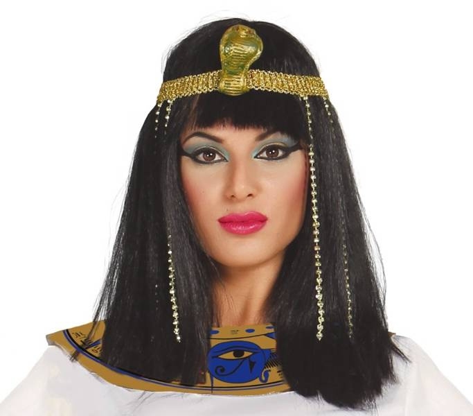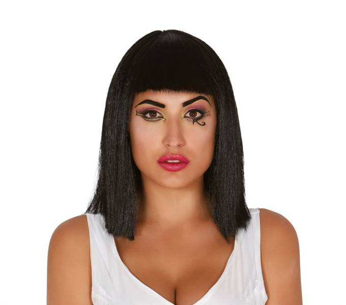 Peruka w kolorze czarnym, długości do ramion. Włosy proste, delikatnie błyszczące. Mocowana na elastycznej siatce.
