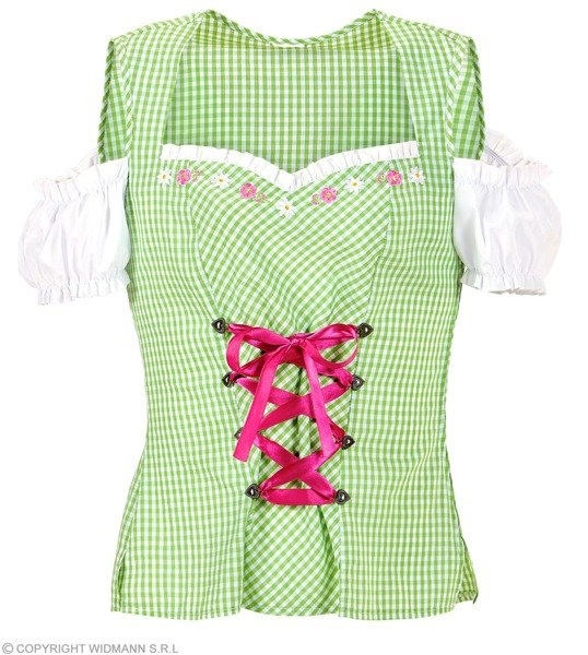 Koszula damska w stylu bawarskim, w delikatną zieloną kratkę. Koszula zapinana na zamek z boku. Rękawki opadające, odsłaniające ramiona.