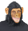 Maska wykonana z gumy-lateksu. Przedstawia głowę szympansa z doczepioną czarną sierścią.