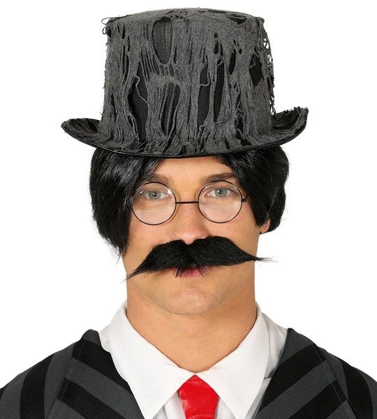 Kapelusz doskonale sprawdzi się na imprezę halloween'ową do stroju zombie gentelmana lub ducha.