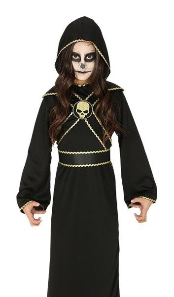 Kaptur wykończony złotą lamówką. Na przodzie tuniki dwa paski materiału ze złotą lamówką ułożone na krzyż ze złotą czaszką. Rękawy wykończone złotą lamówką, poszerzające się ku dołowi.