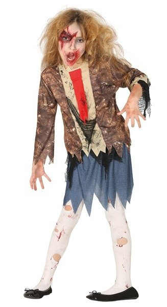 Bluzka składa się z dwóch części materiału. Na przodzie jaśniejsza, jakby bluzka wychodząca spod kurtki. Rękawy i dół wycięte w trójkąty. Część imitująca kurtkę jest koloru ciemnobrązowego, z jaśniejszymi plamkami. Do bluzki doszyty jest czerwony, postrzępiony krawat i czarny kawałek postrzępionego materiału.
