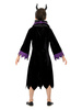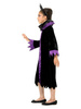 Sukienka z długim rękawem i kołnierzem w kolorze czerni i fioletu.
