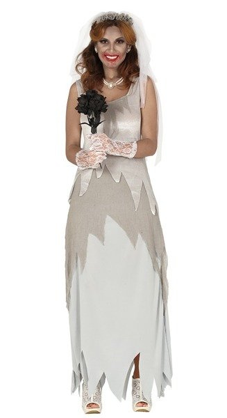 Sukienka długa, w odcieniach zimnej szarości, z tyłu gładka, z przodu warstwowa.
