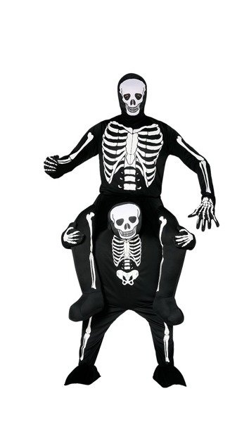 Strój przedstawiający szkielet niosącego na barana drugi szkielet.