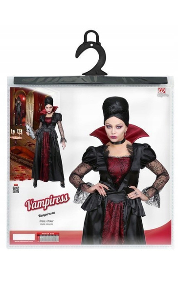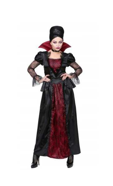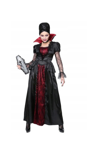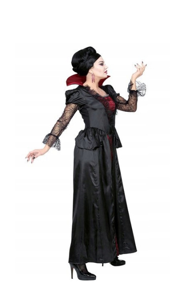Suknia w kolorach czerni i bordo.