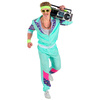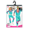 Strój w kolorze seledynowym z różowymi oraz fioletowymi wstawkami w kolorowe wzory.