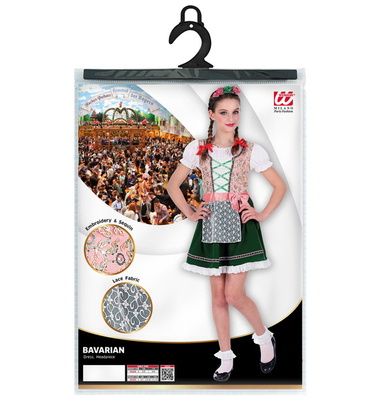Dół sukienki zielony, rozkloszowany, również ozdobiony ludową tasiemką oraz koronką.
