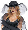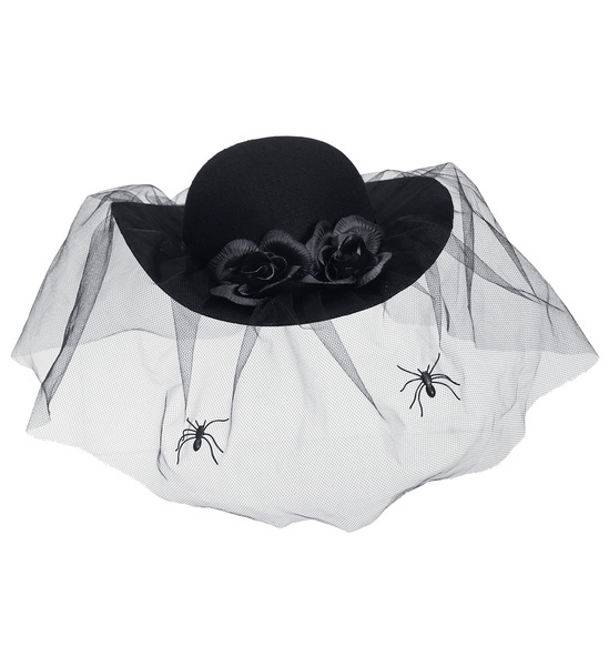 Zdobiony czarną siateczką oraz plastikowymi pająkami.