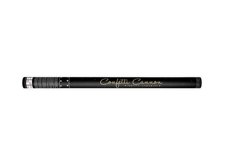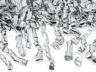 Tuba strzelająca z serpentynami w kolorze srebrnym.