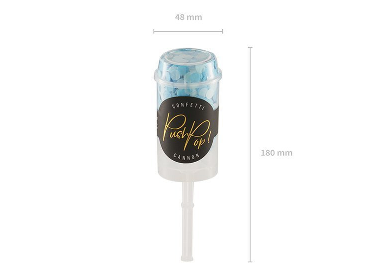 Tubka z konfetti papierowym w kolorze niebieskim.