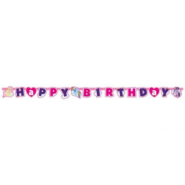 Girlanda z napisem "Happy Birthday", ozdobiona postaciami z My Little Pony.
