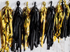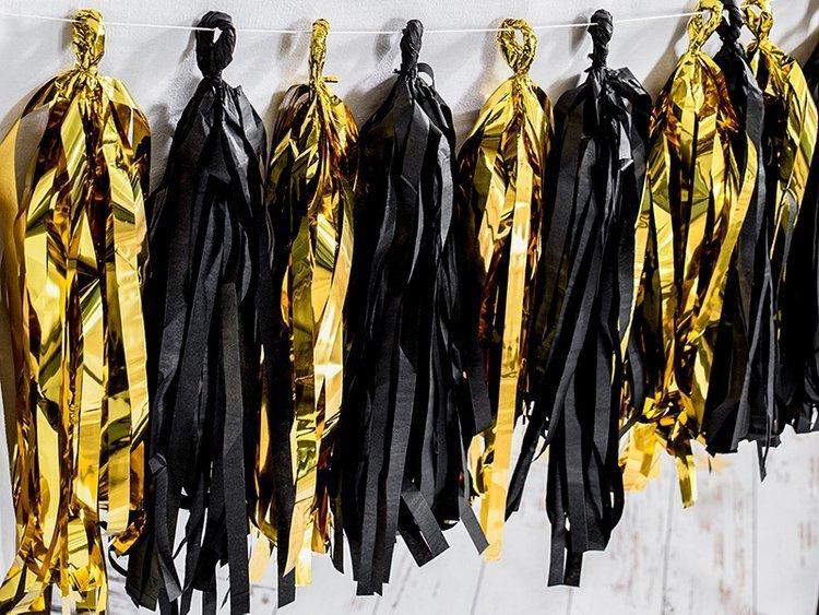 Girlandy frędzelki, w kolorze złotym i czarnym.