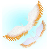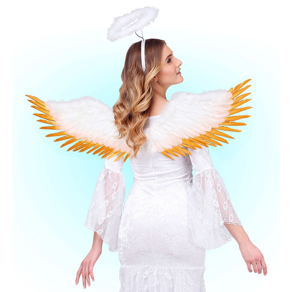 Skrzydła montowane za pomocą gumek w kolorze białym dzięki czemu na białej szacie anioła są niewidoczne.