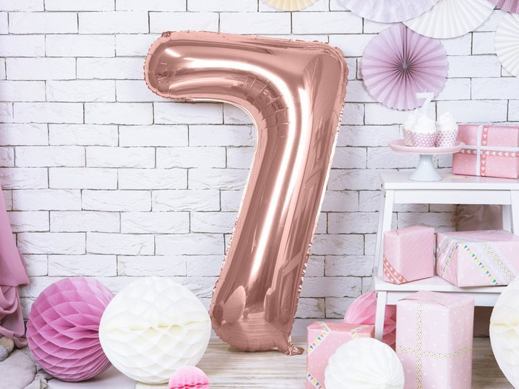 Balon foliowy metalizowany Cyfra "7" w kolorze różowego złota, rozmiar ok. 86 cm (34").