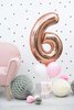 • Balon foliowy metalizowany Cyfra "6" w kolorze różowego złota, rozmiar ok. 86 cm (34").