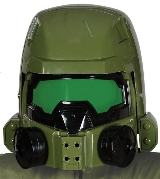Szybka na oczach umożliwia widzenie. Kask zasłania całą głowę.