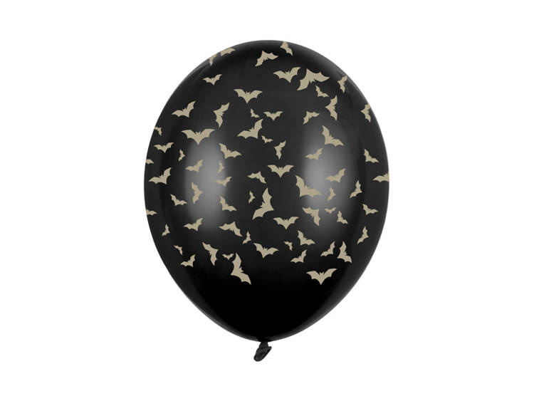 Balony Strong Nietoperze w kolorze Pastel Black ze złotym pięciostronnym nadrukiem.
