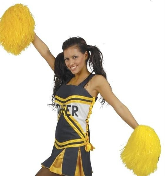 Pompon wykonany z pasków z tworzywa sztucznego przypominającego grubszą folię. Szeleszczący przy intensywnych ruchach.