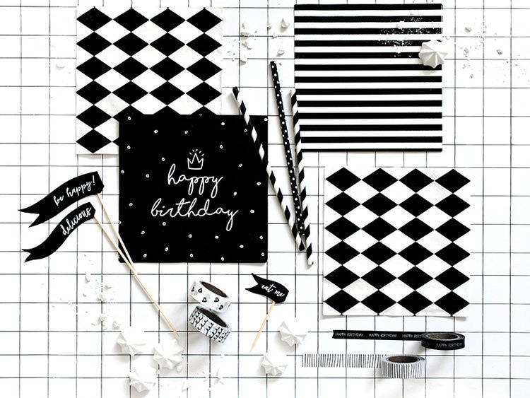 Zestaw serwetek w biało-czarne paski.