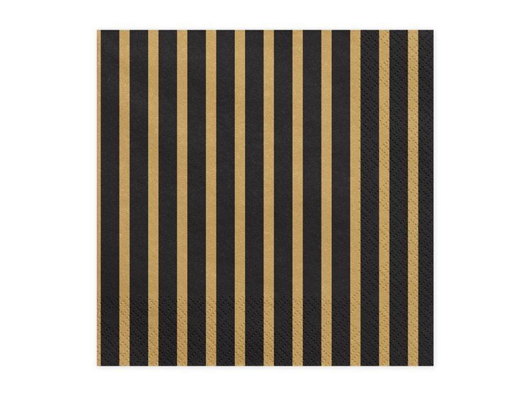 Zestaw serwetek papierowych w czarno-złote paski.