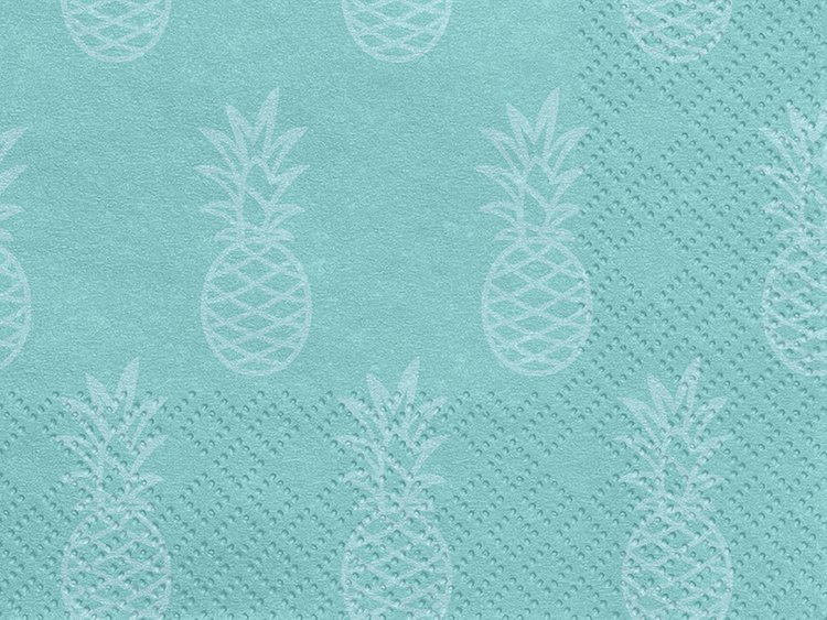Zestaw serwetek w kolorze turkusowym z białymi zarysami ananasów.