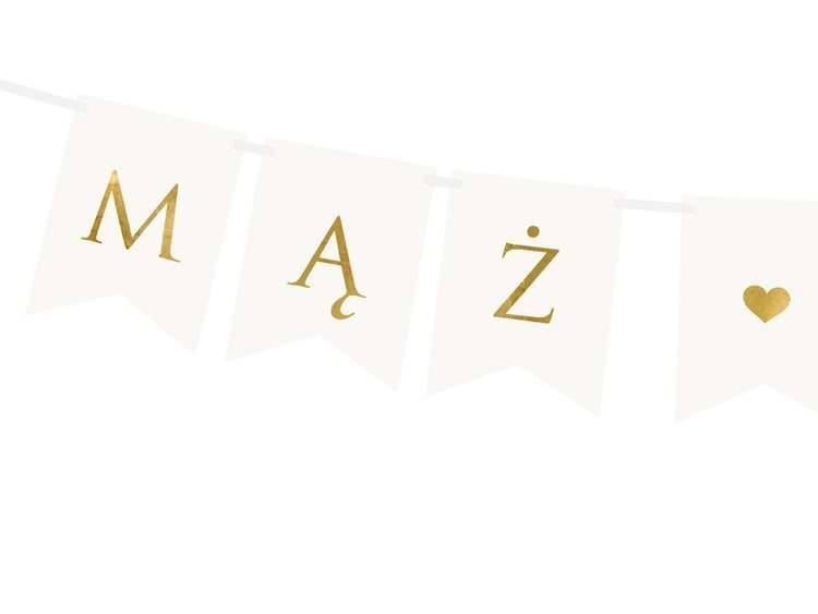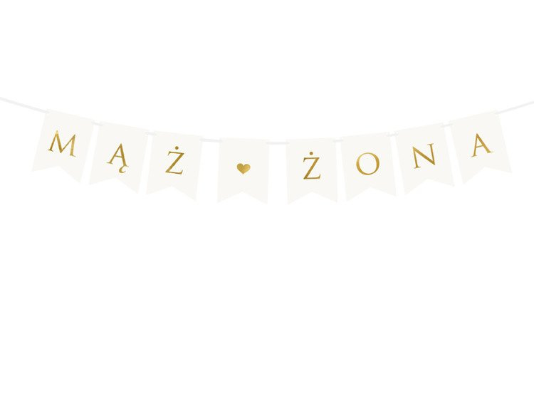 Girlanda w kolorze białym ze złotym napisem "Mąż Żona" do samodzielnego złożenia.
