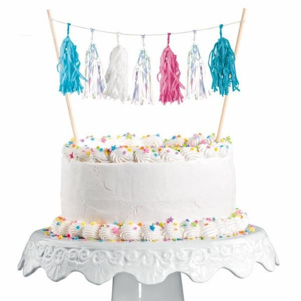 Topper na tort - kolorowe frędzelki.