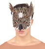 Maska sowy, z czarnym dziobem w kolorze brązowym.