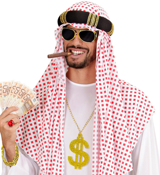 Naszyjnik z wielkim dolarem w kolorze złotym pokryty brokatem.