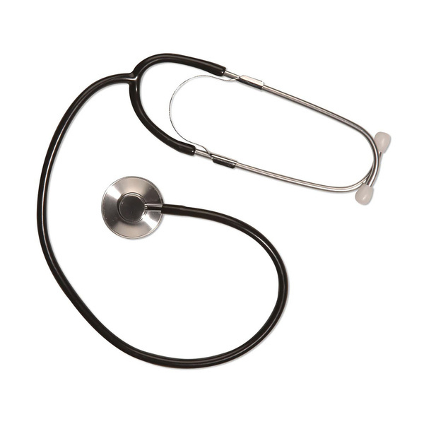 Stetoskop wykonany z metalu. Służy do zabawy jako przyrząd do osłuchiwania klatki piersiowej.