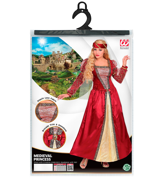 Całość uzupełnia czerwono-złota opaska ze złotym welonem.