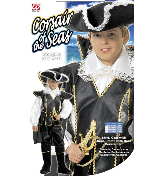 Strój w kolorze czarnym zdobiony złotą lamówką oraz białą koszulą.