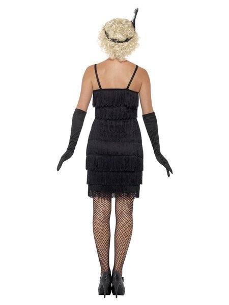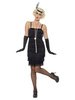 Strój Flapper, Retro, lata 20, Kostium, Karnawał; w komplecie: sukienka, opaska na głowę, rękawiczki; kolor czarny; rozmiar S
