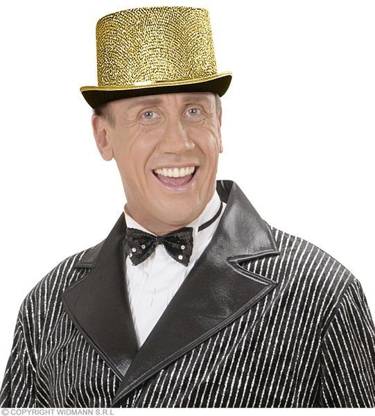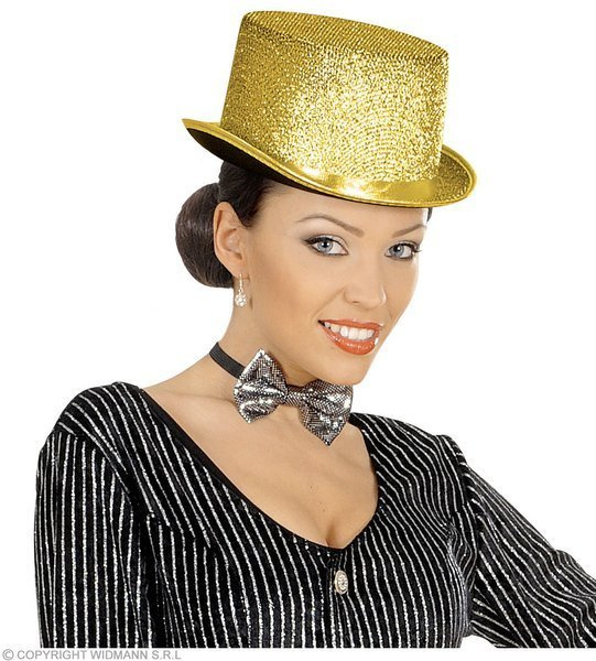 Cylinder wykonany z usztywnianego filcu, obsypanego mieniącymi sie drobinkami.