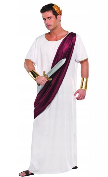 Długa toga w kolorze białym, z krótkim rękawem obszytym złotą lamówką.
