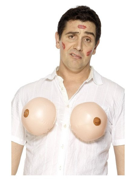 Dmuchane piersi umieszczone na bezbarwnym staniku wiązanym na plecach.
