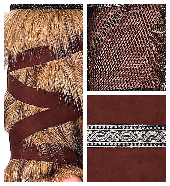 Tunika w kolorze brązowym, z długim rękawem zakończonym futrem.
