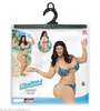 Dodatkowo posiada wszyty niebieski materiał w czarne wzorki imitujący bieliznę.
