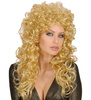 Peruka w kolorze: blond, włosy kręcone. Mocowana na elastycznej siatce. Włosy są błyszczące, wyglądają naturalnie.