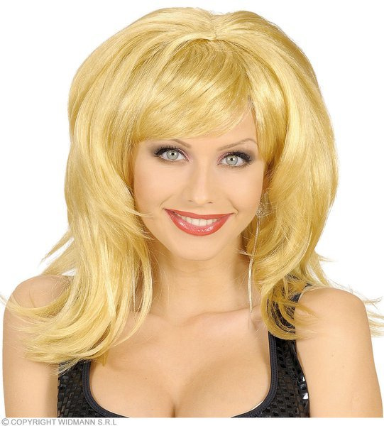 Peruka w kolorze: blond. Włosy cieniowane, lekko wywinięte. Peruka mocowana na elastycznej siatce. Włosy są błyszczące, wyglądają naturalnie.