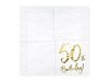 Zestaw białych serwetek ze złotym napisem.
