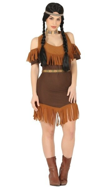 Sukienka na szeroki ramiączkach w kolorach brązu.