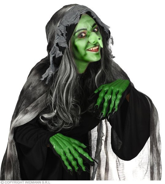 Rękawiczki w kolorze czarnym Na wierzchu zielone szpony wykonane z gumy, zakończone czarnymi pazurami. Rozmiar przeznaczony dla osoby dorosłej.