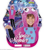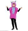 Kamizelka z kapturem wykonana z pluszowego materiału w kolorze różowym; z niebieskimi wstawkami.